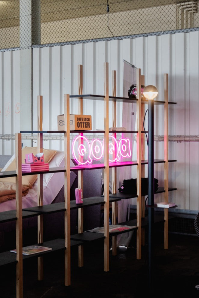 QoQa @ DesignDays, LausanneNéon 1 couleur sur plaque acrylique, découpe "à la forme"
